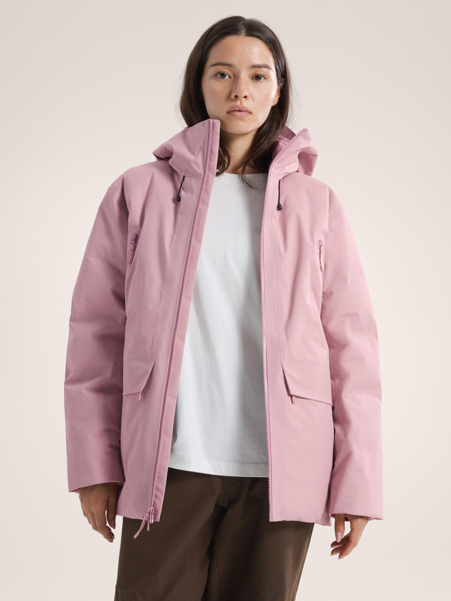 Dual-entry, insulated hand pockets with brushed lining provide warmth and storage