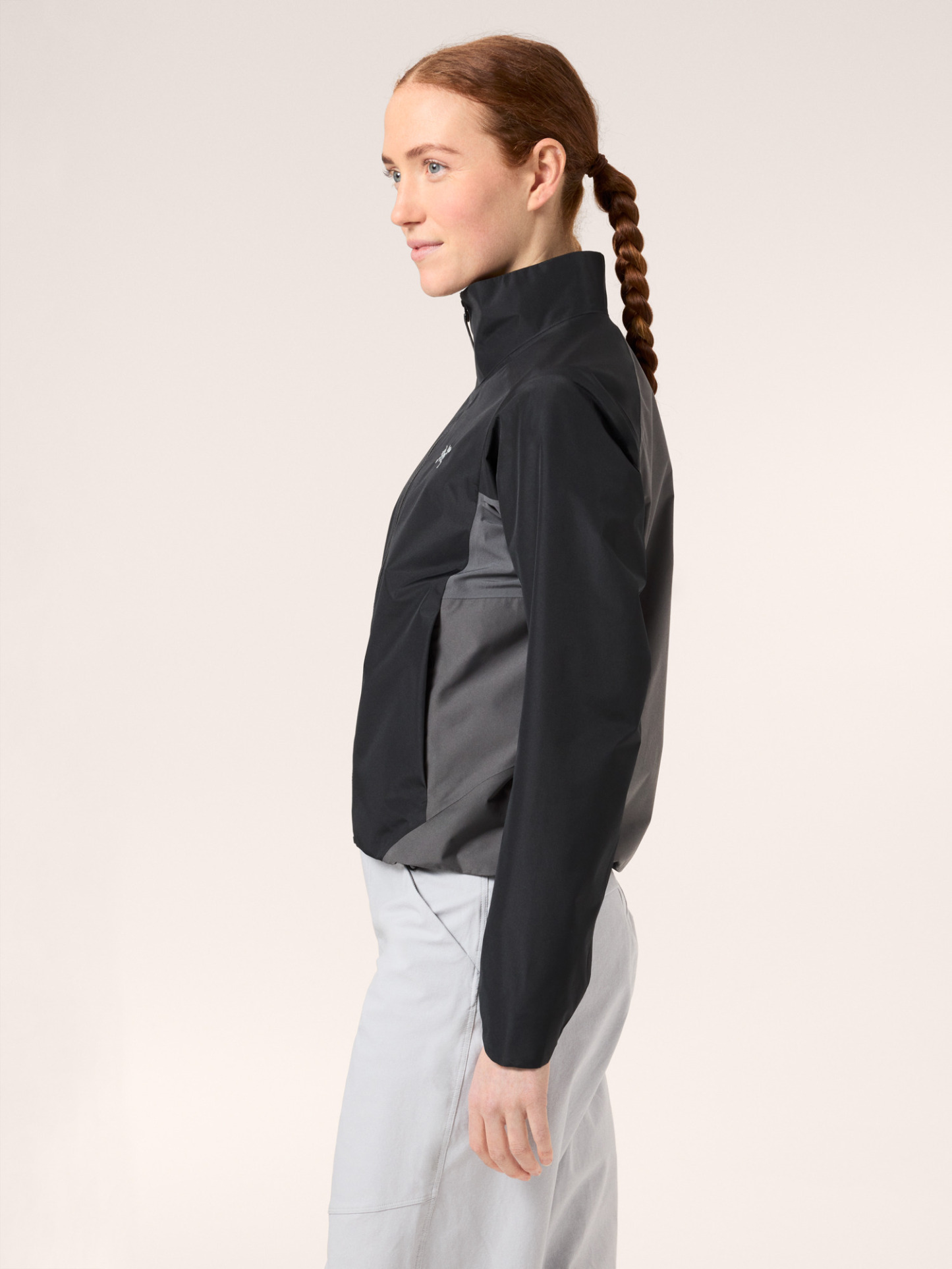 Windproof, water-repellent 2L GORE-TEX WINDSTOPPER fabric with a recycled nylon face provides zonal weather resistance on the body and sleeves