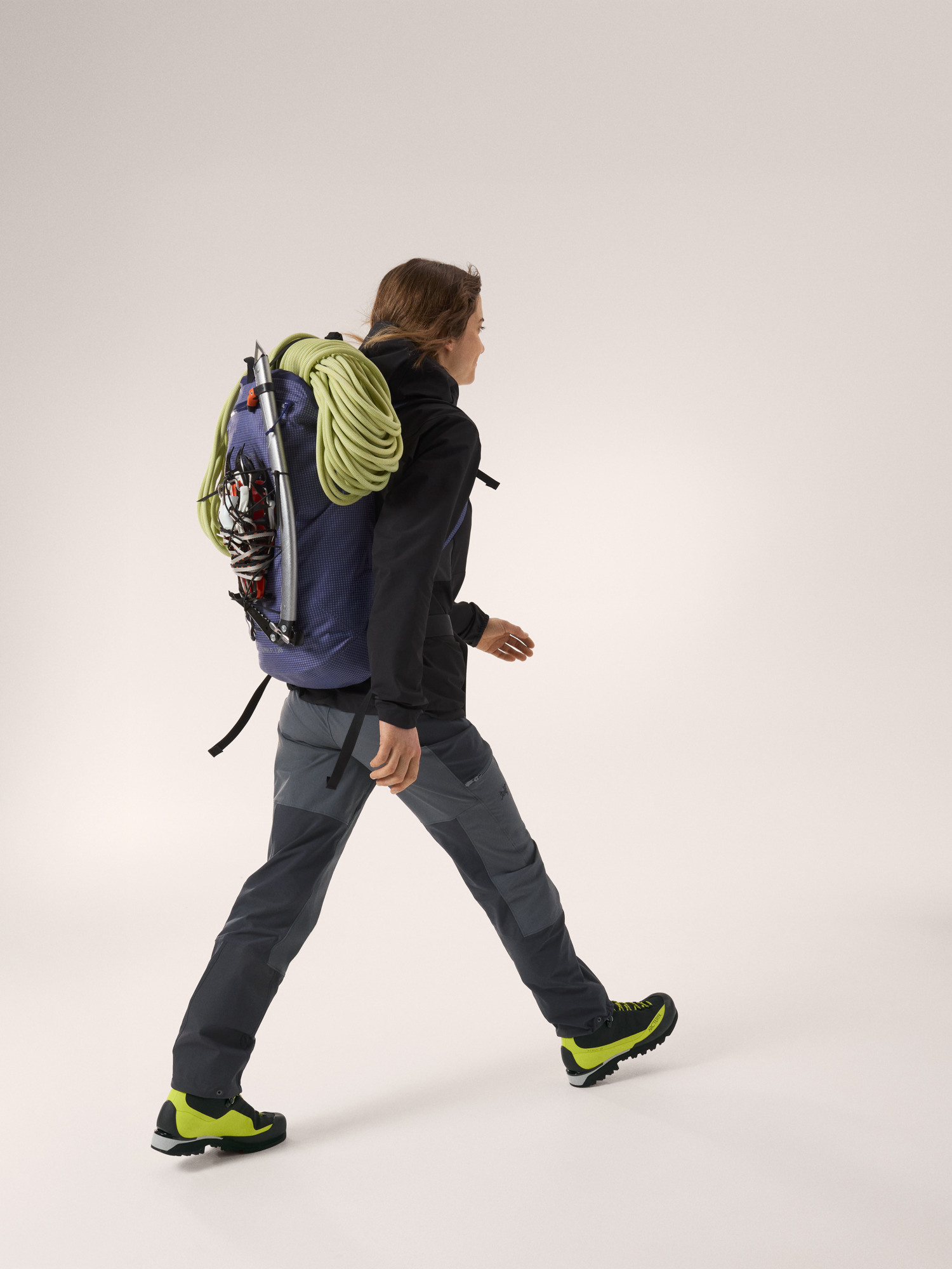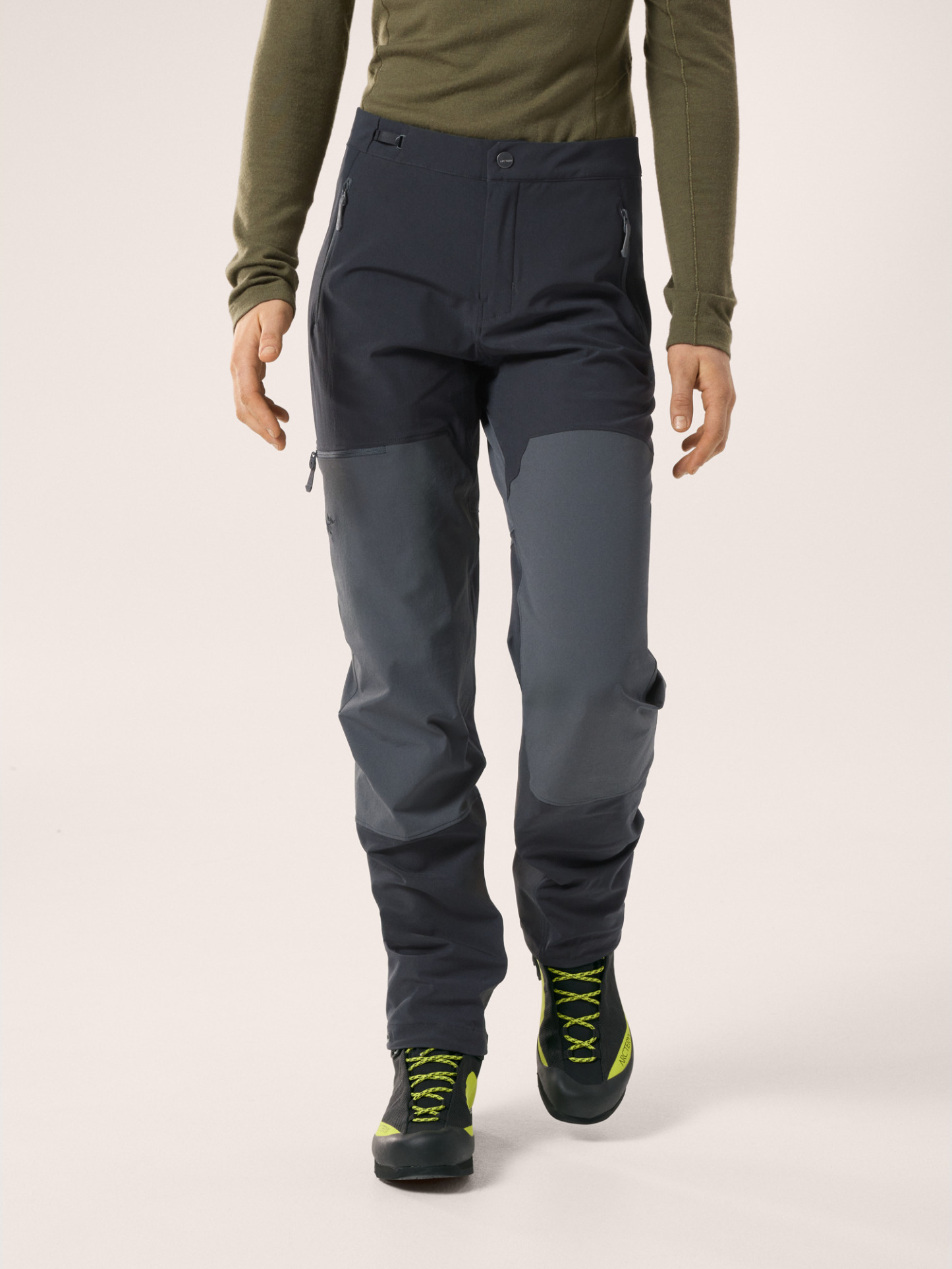 Climb-specific articulated patterning provides mobility and comfort, layers easily